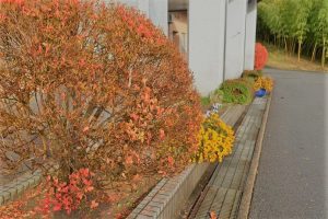 正面玄関前のドウダンツツジも、冬支度を始めました・・・。