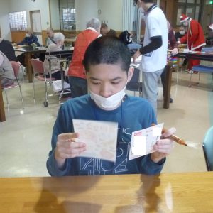 午前はクリスマスカードや年賀状作りに取り組みました。