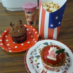 クリスマス喫茶を行い、サンタやトナカイを模ったケーキでクリスマス気分を味わいました(^^)/