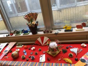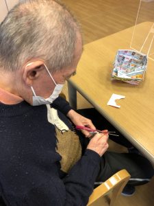 今年最後のレクリエーションは、お正月の切り絵