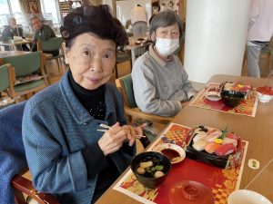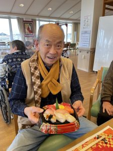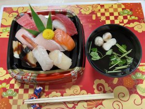 お昼は握り寿司🍣でお祝いです。