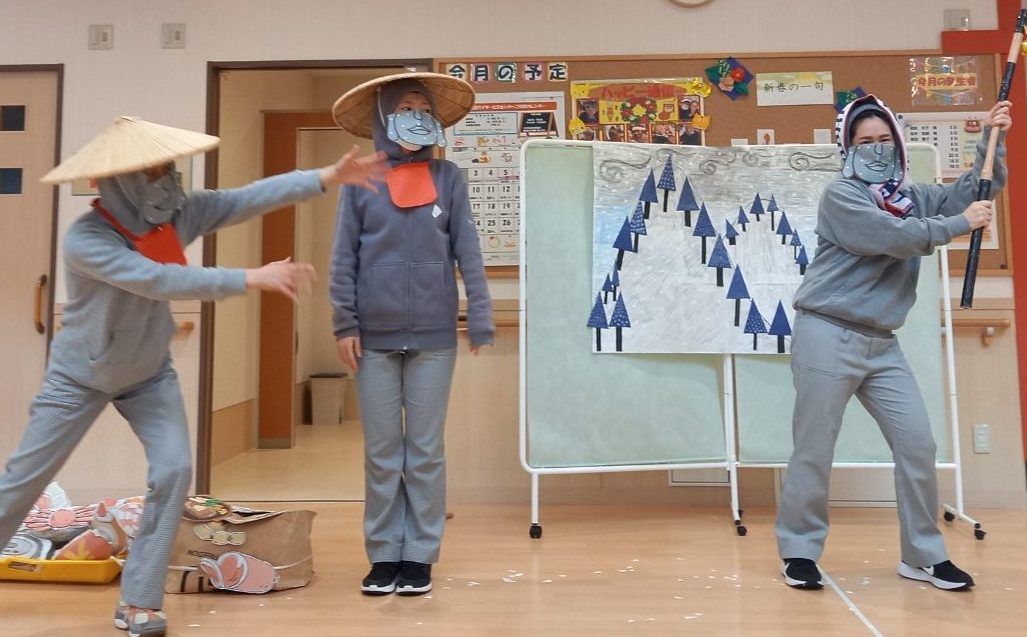 というのも、少し遅めの新年会で、今年は職員による劇「新・かさじぞう☃」を行いました。