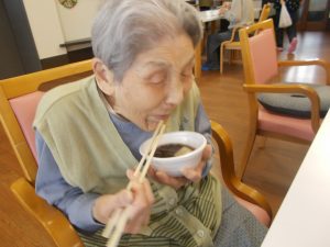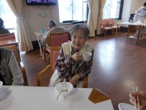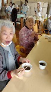 向陽苑木曳野では、毎年1月の喫茶に手作りのぜんざいを振る舞っています。