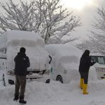 建物沿いに昨夕のうちから避難していた夜勤者の車さえ、雪没・・・仕事あとの雪かきは体に堪えます( ノД`)シクシク…