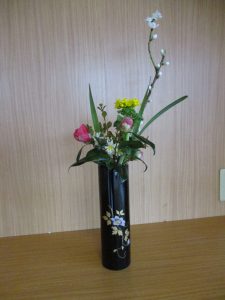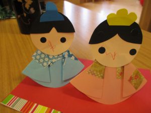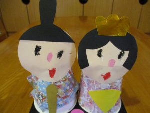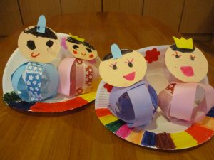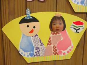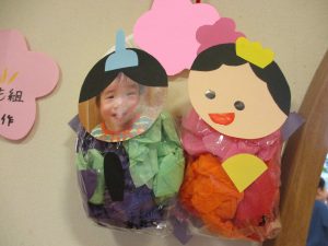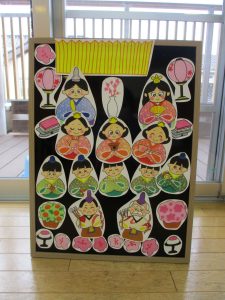 手作りパネルや春のお花を眺め、ひなまつりの歌で雰囲気も味わいました。