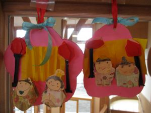 保育士手作りのタペストリーで乳児室もグンと春めいています。