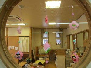 子ども達の製作や、保育士の手作り装飾で可愛く飾られています。