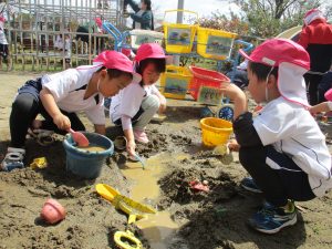 泥んこ遊びやお友だちとのやりとりも楽しいよ。