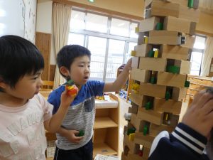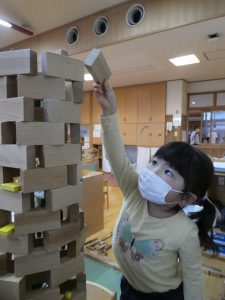 お部屋では積み木遊びも大好き。