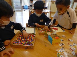 年長児になるとこんなに細かいビーズを使って自分のイメージで表現することも楽しくなります。