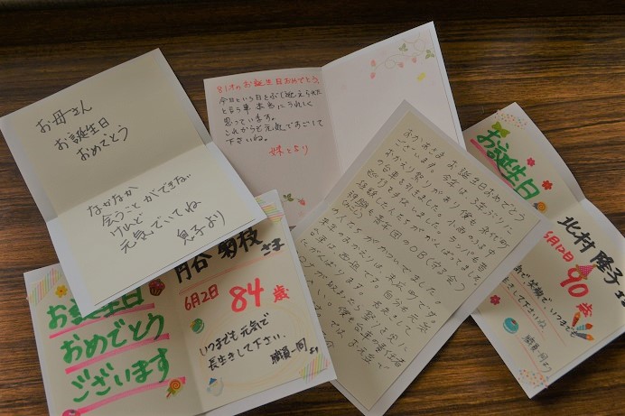 施設長から、それぞれに、家族からのバースデイカードを手渡しさせていただきました