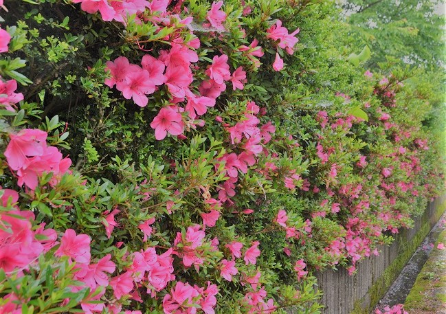 正面玄関のツツジ満開です。