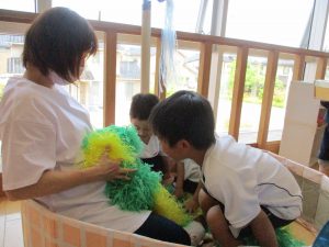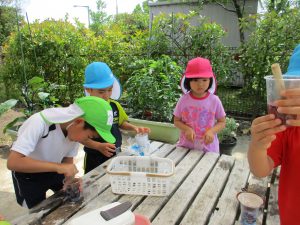 色の変化にも気がつきお友だちと観察を楽しんでいました。