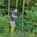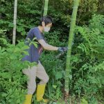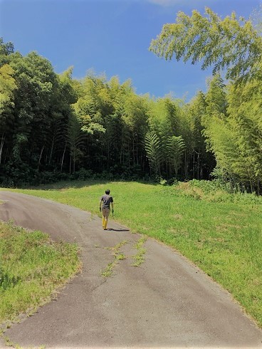 勢いよく伸びる雑草に膝まで埋もれながら・・・筍山の入り口へ・・・