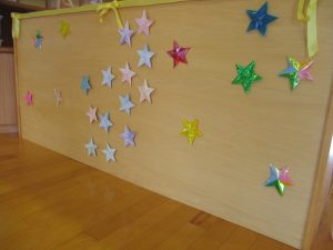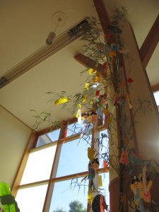 1,2階のオープンスペースには、子ども達がお家の方と一緒に願いを込めて書いた短冊も飾られていますよ。