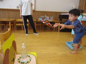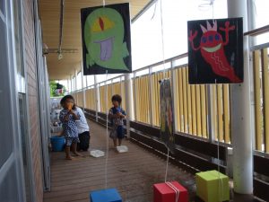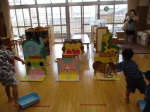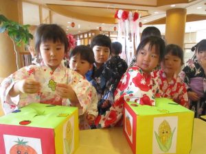 明日は、年長児ひまわり組さんが、未満児クラスのお友だちに、自分達で縁日のお店屋さんをオープンする予定です。