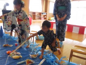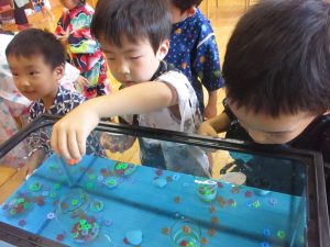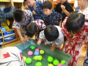子ども達はしっかり狙いをさだめて釣り竿を投げ入れていました。