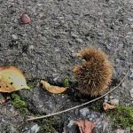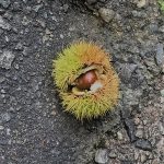 熟すと枝から落ち、棘に覆われたイガに入った状態で・・・