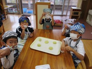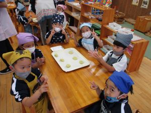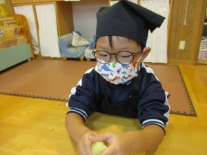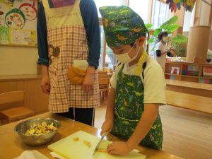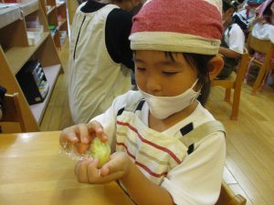 年中児ゆり組は、おやつのスウィートポテトを作りました。