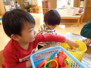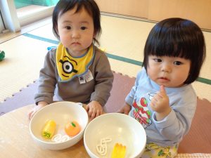 今日は可愛い、未満児クラスの「うめ・もも・たんぽぽ組」の様子を紹介します。