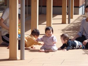 今年度4月に開園した分園で0歳児うめ組さんは過ごしています。