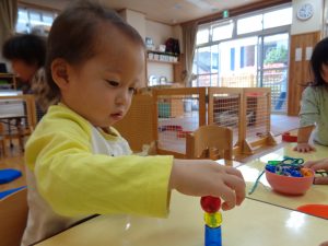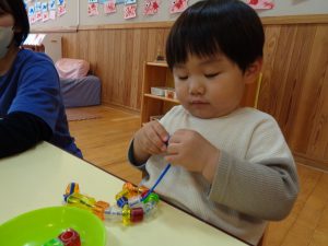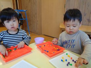 たんぽぽ組は指先を使う遊びに夢中です。この真剣な表情がまた、可愛いんです♡