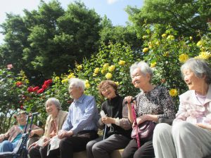そっとにおいをかいでみたり・・・🌼 最後は、ベンチでお茶休憩☕