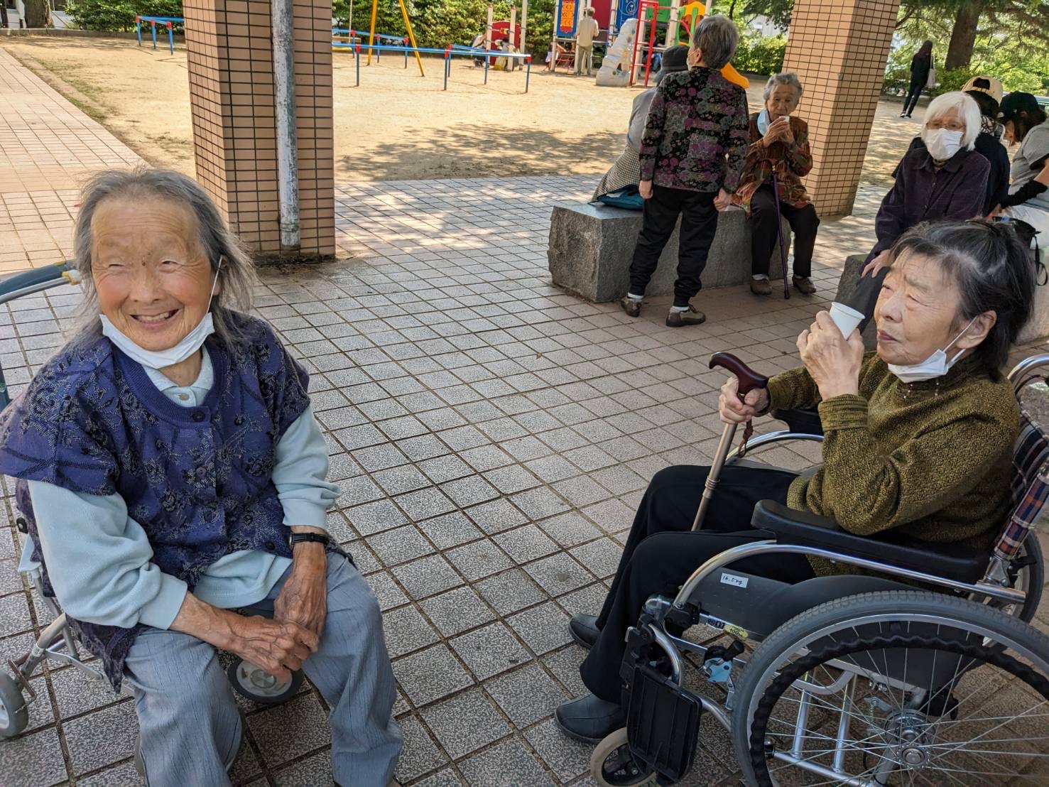 そっとにおいをかいでみたり・・・🌼 最後は、ベンチでお茶休憩☕