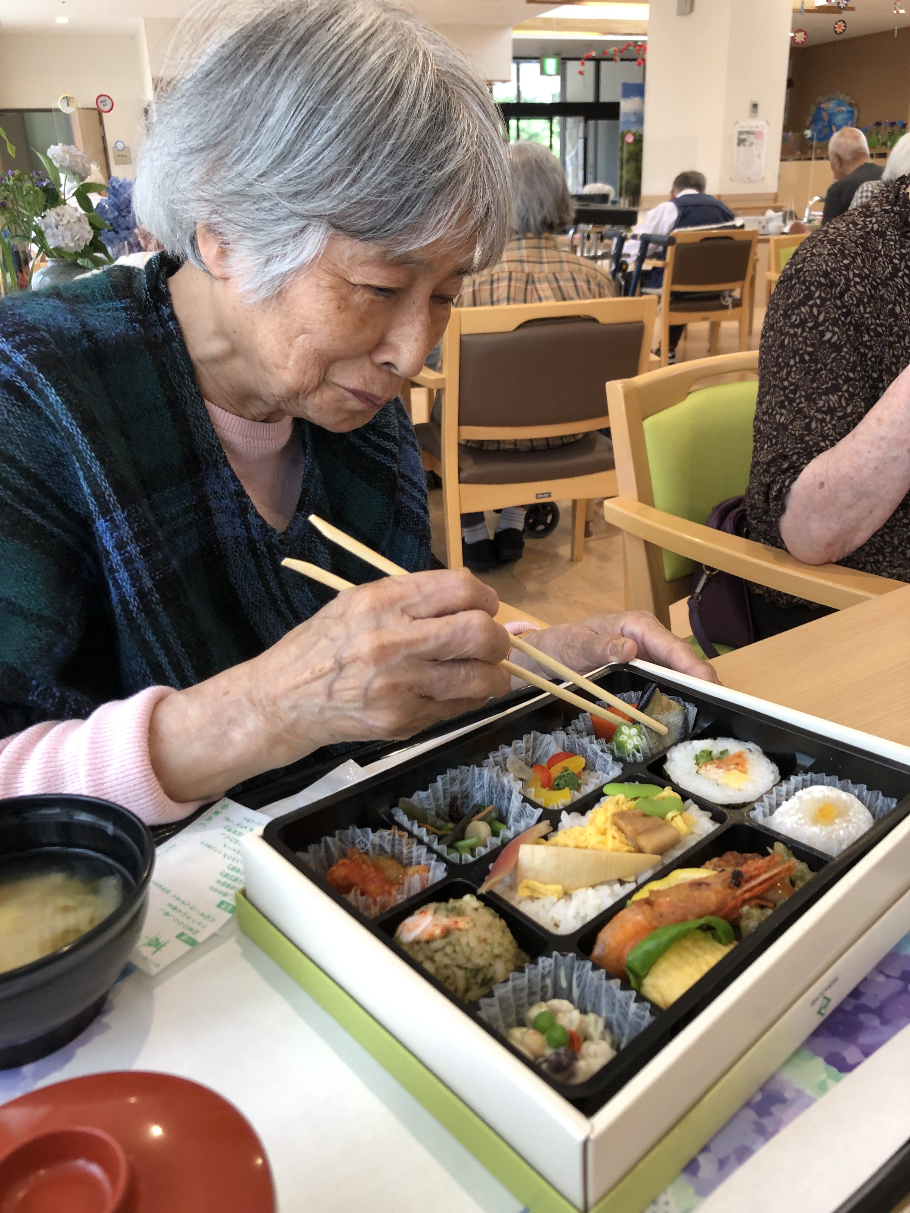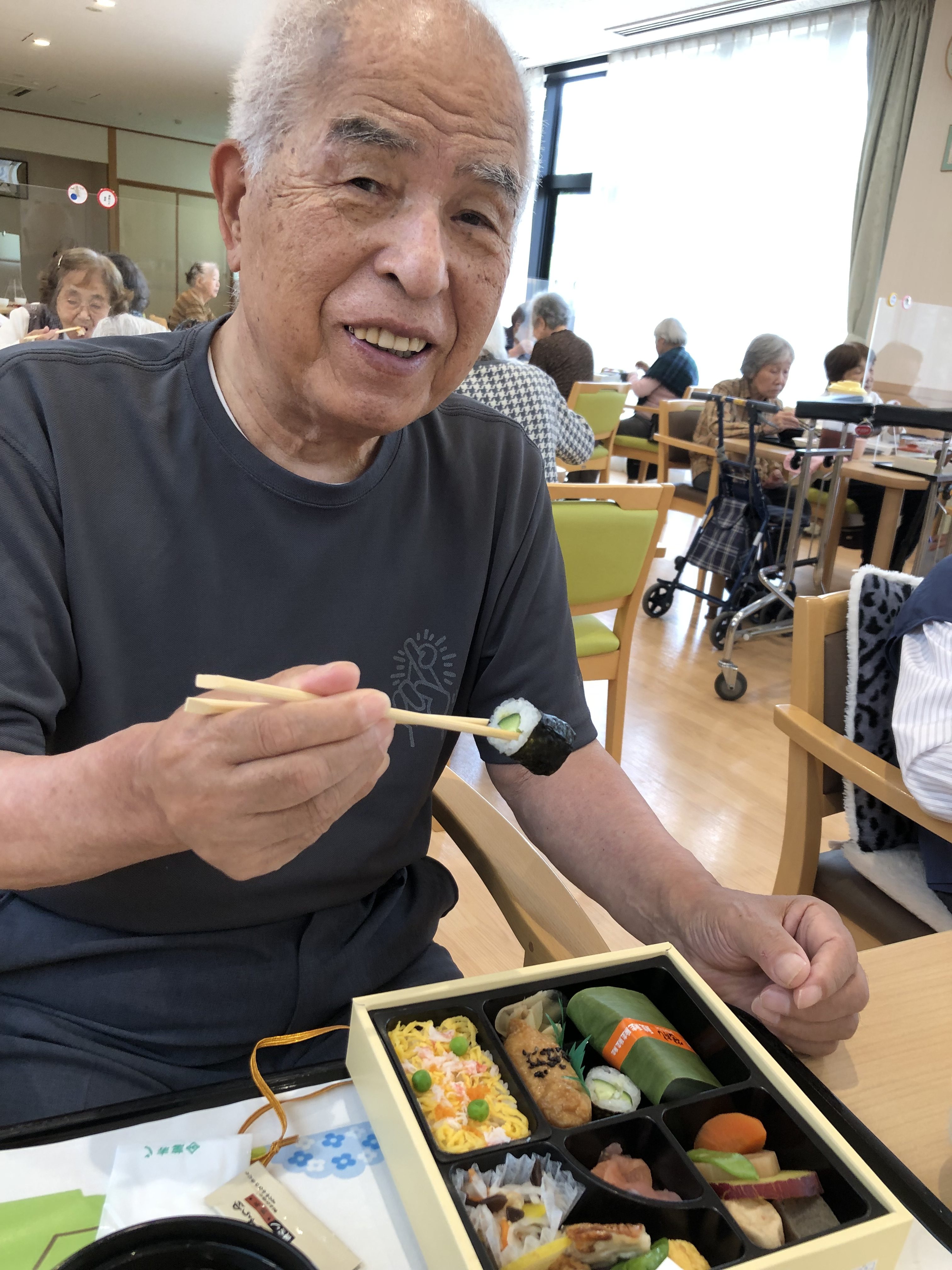 お好みのお弁当やお寿司を選んでいただき、当日皆さんでワイワイとお召し上がりいただきました♪
