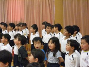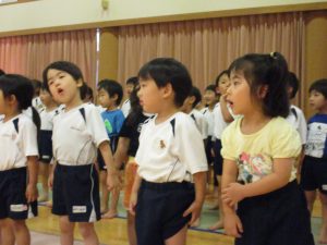 みずきこども園でも3,4,5歳児クラスでホールに集まって、たなばたまつりをしました。