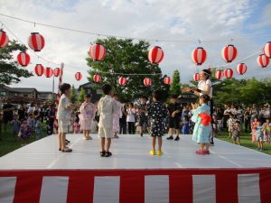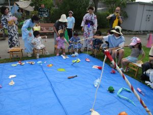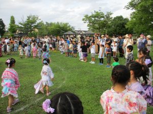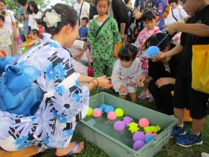 太鼓演奏の後は、親子で盆踊りと縁日を楽しみました。