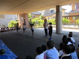 年長児ひまわり組とフリータイムや質問タイムで一緒に過ごしました。