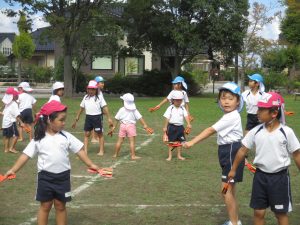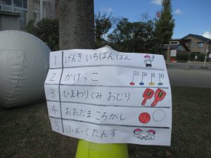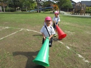フリータイムでも運動会ごっこが盛り上がっています。明日もまた一緒に自分達の運動会を楽しみましょうね。
