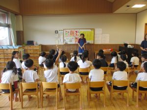 今日は、野菜の切り方を給食先生に教えてもらいました。