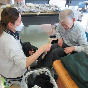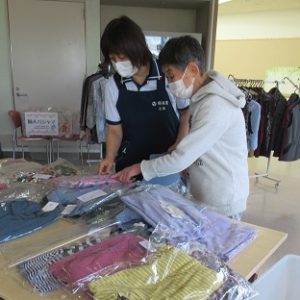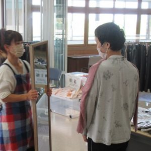 外出が困難な方にも買い物を楽しんでいただきたく、衣類品の展示販売会を実施しました。