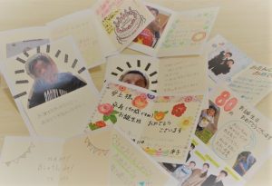 誕生会は、毎日第2水曜日に開催されています。誕生月の約1か月前に、誕生日カードの依頼をご家族に郵送してります。