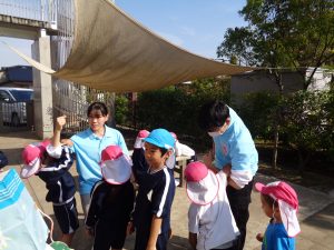 元気ではつらつとした学生さんの笑顔に子ども達もあっという間に惹きつけられ、直ぐに仲良くなりました。