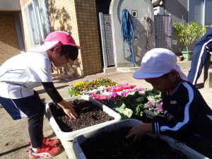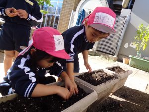 今日は「新しいお友だち喜んでくれるかな」とチューリップの球根を植えました。