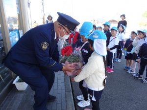 ひまわり組はいつもみんなが安心して安全に過ごせるように守ってくれている交番の方へ。