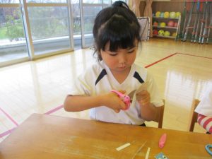 みんなの身近に溢れているものばかりですね。どれがくっつくかな?みんなで相談中です。