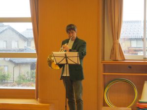 演奏してくださった方は園長先生のお友だちでホルン、まさき先生。ピアノ、あきこ先生です。