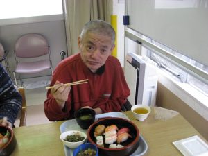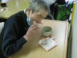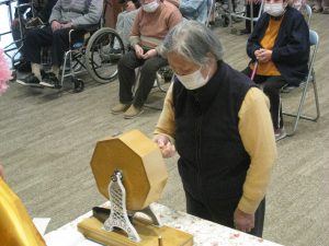 三陽ホームでも多くの利用者様が生活されていますが、皆様、冷静に避難され、誰一人怪我をされることなく乗り越えることができました。余震は続き、心配と緊張の毎日だったのですが、少しでも皆様に元気で笑顔になって頂きたく、1月10日新年会が催されました。