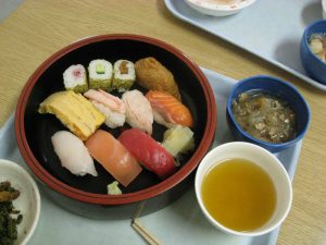 新年会では午前に初釜、昼食にはお寿司が振舞われ皆様大変喜んでいらっしゃいました。