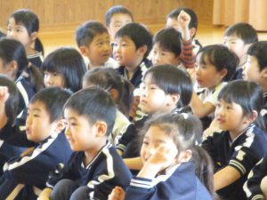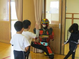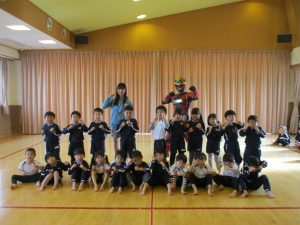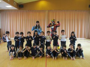 この日を楽しみにしいた4歳児ゆり組。子ども達が元気に「ゲンゾイヤー」と呼ぶとかっこよく登場するゲンゾイヤーに「わぁー!!」と大歓声でした。