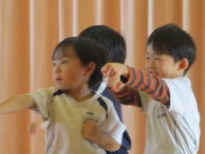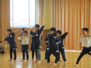 その後は、ゲンゾイヤーからキメのポーズを教えてもらいみんなで「ゲンゾイヤー」体操をして沢山体を動かしました。