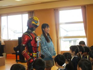 保護者会の活動として、今日はみずきこども園にツェーゲン金沢のヒーロー“ゲンゾイヤー”と、ほくりくアイドル部のお姉さんがやってきました。