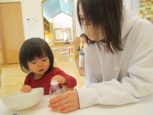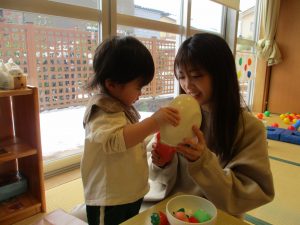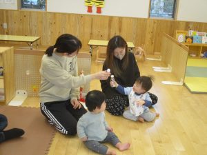 昨日、今日は0歳児うめ組の保育参観がありました。