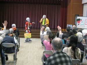 最初に「節分は1年に何回あるか?」「鬼が嫌う魚は?」「豆まきをしなくてもよい人の苗字は?」また、不意をついて「今、何問目?」等、節分にまつわる難問奇問クイズが出題され、果敢に挑戦する利用者の皆様の姿がありました。