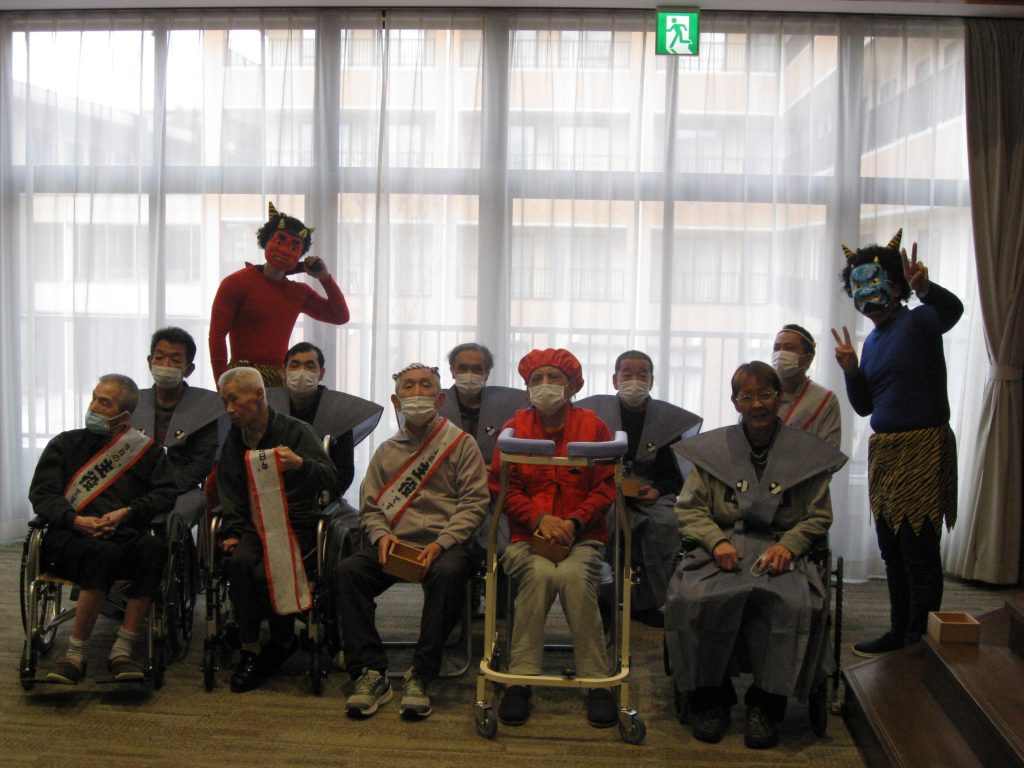 令和6年2月2日(金)、4年ぶりに利用者全員一堂に会しての節分祭を行いました。