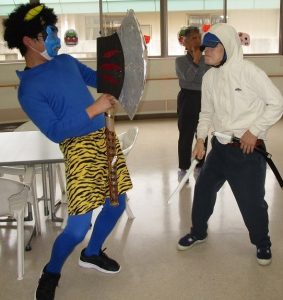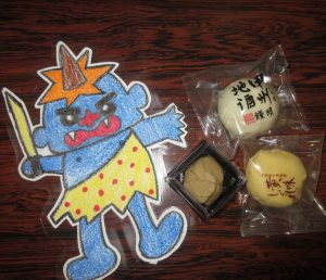 鬼退治後は、上生菓子とまんじゅうを食べながら記念撮影。